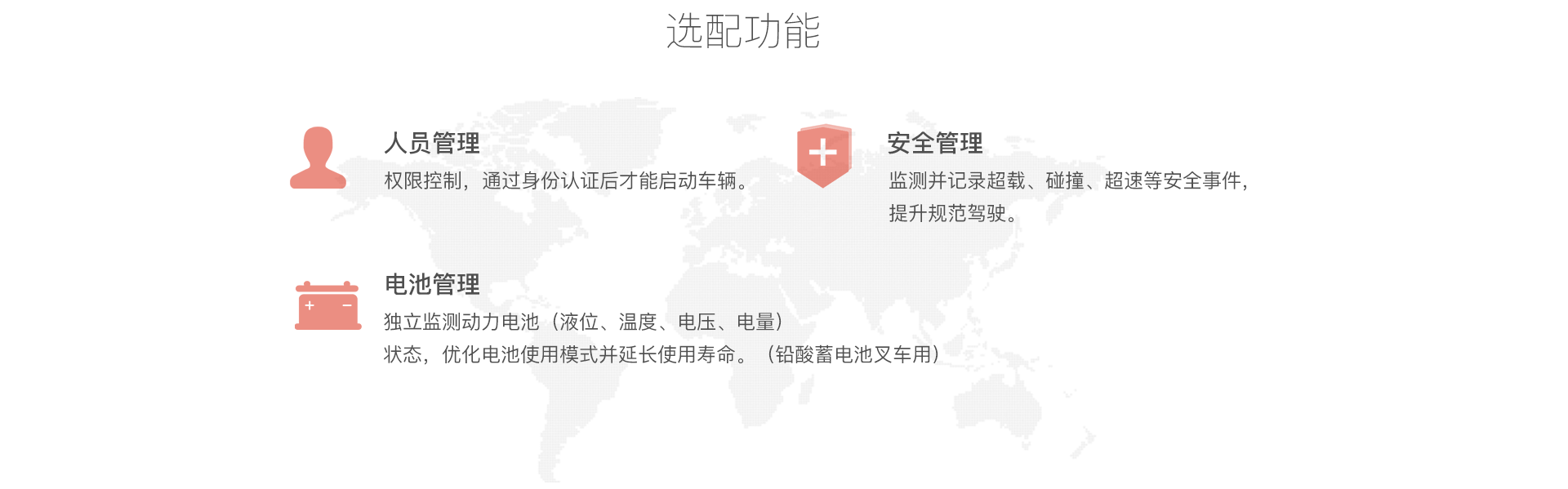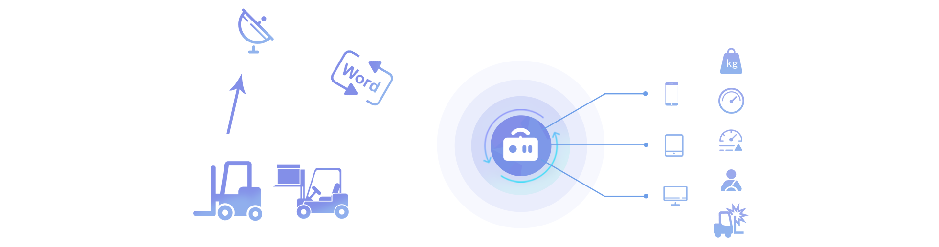 通過傳感器獲知叉車狀態和人員作業情況并接入互聯網、駕駛員、維修工、管理員等即可通過電腦、手機、車載設備終端了解車輛設備狀態、使用狀態、因此能隨時隨地掌控情況、實現高效的車隊管理。